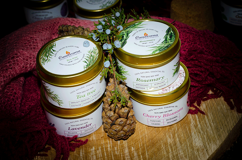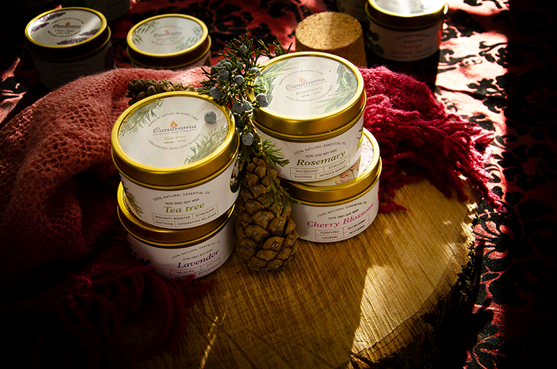 Lavender contributes to improvements in physical conditions. Its properties purify and hydrate the skin, awakening its natural glow. Rosemary is best known for its stimulating, calming, and pain-relieving properties, and the Tea Tree soy wax candle is light and subtle, finally, the Cherry Blossom Scented candle is suitable for reducing stress and anxiety. If you use them while meditating, they can create an environment that is conducive to relaxation.